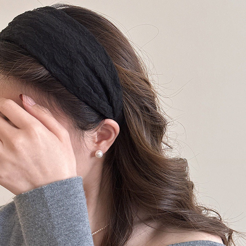 "Soft Textured Cream Headband – Elegant Stretch Hair Wrap for Everyday Chic"